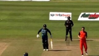 ইংল্যান্ডের ইনিংসের ২৯তম ওভারে ঘটল এক অদ্ভুত ঘটনা। ফাস্ট বোলার পল ভ্যান মিকেরেন পঞ্চম বলটি স্লোয়ার করার চেষ্টা করেন। কিন্তু লেগ সাইডে ২টি ড্রপ খাওয়ার পর বলটি পিচের বাইরে চলে যায়।