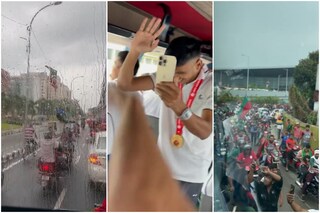এরপর টিম বাসে আরপিএসজি অফিসে মমিনপুরে যাওয়ার পথে আকাশভাঙা বৃষ্টি। কিন্তু সেই বৃষ্টিকে কার্যত বেঙ্গালুরুর এফসির মতই হার মানিয়ে প্রিয় দলের বাসের সঙ্গে থাকলেন সমর্থকরা। বৃষ্টি মাথায় করেও উচ্ছাস উন্মাদনার কোনও অভাব নেই। বাসের ভিতর থেকে ফুটবলাররাও বারবার সাড়া দিচ্ছেলেন সমর্থকদের ভালোবাসার। বাসে গান চালিয়ে নাচতেও দেখা গেল মোহনবাগান ফুটবলারদের।