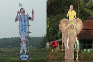 সম্প্রতি নেট দুনিয়ায় ছড়িয়ে পড়েছিল কোরলার কোকিকোড়ের একটি জলাশয়ের ছবি। তিনটি দৈত্যাকার কাট-আউট শোভা পাচ্ছে সেখানে। মেসি-নেইমার-রোনাল্ডো। কোনওটার উচ্চতা ৩০ ফুট তো কোনওটার ৪০ ফুট। এবার সেই কেরালার মালাপুরমেও বিশ্বকাপ উপলক্ষ্যে সাজানো হয়েছে। সেখানেও তৈরি করা হয়েছে মেসির বিশাল কাটআউট। আবার হাতির পিঠে বসানো হয়েছে নেইমারেক। এছাড়া পতাকা দিযে সাজানো হয়েছে গোটা এলাকা।