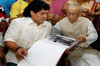 মারাদোনার দীর্ঘজীবন কামনা করে তাঁর হাতে একটি অনন্য উপহার তুলে দিয়েছিলেন কিংবদন্তি বাম নেতা৷ ফিদেল কাস্ত্রোর কলকাতা সফরের সময়ে তোলা বেশ কিছু ছবির একটি অ্যালবাম মারাদোনাকে উপহার দিয়েছিলেন জ্যোতি বসু৷ রাজ্যের প্রাক্তন মুখ্যমন্ত্রীর হাতে পুষ্পস্তবক তুলে দিয়েছিলেন মারাদোনাও৷