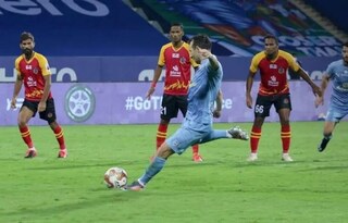 ম্যাচের শুরুতেই চোট পেয়ে উঠে গেলেন লাল-হলুদ ডিফেন্সের ভরসা ড্যানি ফক্স। এখানেই রবি ফাওলারের অর্ধেক প্ল্যান ঘেঁটে যায়। পরিবর্ত হিসেবে নামানো হয় মহম্মদ রফিককে। ম্যাচের কুড়ি মিনিটে প্রথম গোল হজম। রাওলিন বর্জেস নীচ থেকে একটা লম্বা বল বাড়ান। বাঁ দিক দিয়ে উঠে আসা হুগো বুমু সুরচন্দ্রকে গতিতে পরাস্ত করে বল নিয়ে ঢুকে পড়েন ইস্টবেঙ্গল বক্সে। নিজে শট না নিয়ে বাড়িয়ে দেন লে ফন্দ্রেকে। দেবজিতের কিচ্ছু করার ছিল না। ৪৮ মিনিটে বক্সের মধ্যে বুমুকে ফাউল করলে পেনাল্টি পায় মুম্বই। ২-০ করতে ভুল করেননি অ্যাডাম। দশ মিনিটের ব্যবধানে তৃতীয় গোল মুম্বইয়ের। ফ্রিকিক থেকে দারুণ বল বাড়ান যাহু। বুমু ডান পায়ে বলটা নামিয়ে দিলে হার্নান জোরালো শটে গোল করেন।