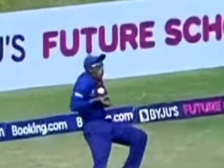 বল গিয়ে সোজা পড়ে ডিপে ফিল্ডিং করা তাম্বের হাতে। তবে তাম্বে সহজ ক্যাচ ধরতে গিয়ে প্রথমে ফস্কে ফেলেন। ক্যাচ নেওয়ার চেষ্টা করার সময় তাম্বের হাত থেকে বল প্রায় ছিটকে যায়। কিন্তু সময়মতো এগিয়ে গিয়ে এক হাতে ছো মেরে দুর্দান্ত ক্যাচ ধরেন ভারতীয় ফিল্ডার। জেম রিউকে এদিন প্যাভিলিয়নে ফেরত পাঠান ভারতীয় পেসার রবি কুমার।