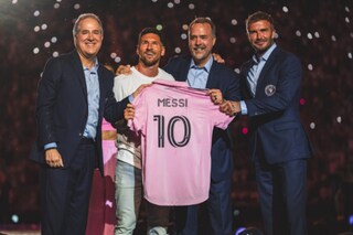 অনুষ্ঠানের মূল মঞ্চ থেকে ‘লিওনেল মেসি, বিশ্বের সেরা ১০ নম্বরকে স্বাগত’-বলতেই ২২ হাজার দর্শকের গর্জন হার মানায় লক্ষাধিক দর্শকের আওয়াজকেও। মাঠের বাইরেও তখন শুরু হয়ে গিয়েছে উৎসব। আতসবাজির রোশনাই, নাচে-গানে বরণ করে নেওয়া হয় আর্জেন্টিনরা কিংবদন্তীকে। আতসবাজির রোশনাই যেন হার মানাবে কাতারের ফাইনালকেও। ডেভিড বেকহ্যাম আলিঙ্গন করেন মেসিকে। লিও-র হাতে তুলে দেওয়া হয় তাঁর প্রিয় ১০ নম্বর জার্সি। বার্সা ছেড়ে পিএসজিতে যাওয়ার সময় যা ত্যাগ করতে হয়েছিল মেসিকে।