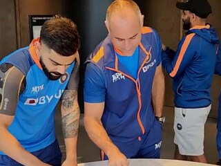 শনিবার ভারতীয় ক্রিকেট বোর্ডের (বিসিসিআই) অফিসিয়াল টুইটার অ্যাকাউন্ট থেকে একটি ভিডিও শেয়ার করা হয়েছে। তাতে বিরাটকে কেক কাটতে এবং তার পর সেটা খেতে দেখা যায়। সঙ্গে রয়েছেন প্যাডি আপটন।