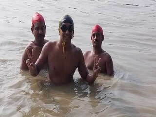 আর ১৯ কিলোমিটারে পুরুষ বিভাগে প্রথম কলকাতার গৌর-ব কাবেরী ও মহিলা বিভাগে প্রথম কলকাতার মৌবনী পাত্র। রবিবার ভোরে জঙ্গিপুর আহিরণ ঘাট থেকে টান টান উত্তেজনায় শুরু হয় বিশ্বের দীর্ঘতম সাঁতার প্রতিযোগিতা।