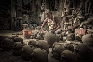 এবছর ভোট এবং লকডাউনের জন্য পয়লা বৈশাখ বা অক্ষয় তৃতীয়ার দিন তেমন বরাত আসেনি কুমোরটুলিতে। কিন্তু করোনার বিধি নিষেধ শিথিল হওয়ার পর অনেক পূজা কমিটি এসে ঠাকুরের বায়না করে গেছে। এরপর রথের দিন আরও বরাত পেয়েছেন মৃৎশিল্পীরা। অন্যান্যবার এতদিনে গমগম করে কুমোরটুলির ঘরগুলো। কিন্তু এবার এক দুজনের উপর ভরসা করে কাজে হাত দিয়েছেন মৃৎশিল্পীরা।