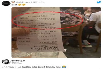 একজন ভারতীয় ফ্যান এদিন ভারতীয় ক্রিকেটারদের বিল পে করতে দেননি৷ তিনি নিজেই সেই বিল দিয়ে দিয়েছিলেন৷ এরপর সেই বিলের একাধিক ছবি তিনি খুব গর্বিত ভাবে শেয়ার করে দেন সোশ্যাল মিডিয়ায়৷ এই বিলে দেখা যাচ্ছে বিফ -পর্ক সবকিছুই অর্ডার করেছিলেন ক্রিকেটাররা৷ তবে সোশ্যাল মিডিয়ায় এই বিলের সত্যতার কোনও দায় নিউজ ১৮ বাংলার ৷ কারণ তা কোথাও পাওয়া যায়নি৷