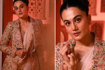 এদিন তাপসী একটি হালকা প্যাস্টেল রঙের শাড়ির সঙ্গে পরেছিলেন একটি ডিজাইনাকর লং কোট। এই সাজে শাড়িকে আলাদা মাত্রা দিয়েছেন অভিনেত্রী।