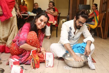 এর আগের দিনই দেখিয়েছিলাম অর্পিতা চট্টোপাধ্যায় পুজোর ভোগ রান্না করছিলেন, এইবার লক্ষ্মীপুজোয় দৃশ্য সরাসরি ৷ পুজো শেষে সিন্নি মাখছেন প্রসেনজিৎ-অর্পিতা ৷ ছবি সৌজন্যে ফেসবুক ৷