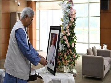 গত সপ্তাহেই ভারতের প্রাক্তন মনমোহন সিং মারা গেছেন। মোহম্মদ ইউনুস ঢাকায় ভারতীয় হাইকমিশনে গিয়ে মনমোহন সিংকে শ্রদ্ধা জানান। ঢাকায় ভারতীয় হাইকমিশনে মনমোহন সিংয়ের একটি ছবি রাখাছিল সেখানেই বাংলাদেশের অন্তর্বর্তীকালীন সরকারের প্রধান মোহম্মদ ইউনূস মনমোহন সিংয়ের ফটোর সামনে ফুল দিয়ে শ্রদ্ধা জানানোর পর বিশেষ বার্তাও লেখেন। মনমোহন সিংয়ের মৃত্যুতে ভারতে সাত দিনের জাতীয় শোক ঘোষিত হয়েছে৷