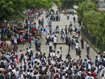 রবিবার কুর্মিটোলায় শহীদ রমিজ উদ্দিন ক্যান্টনমেন্ট কলেজের দুই শিক্ষার্থীর মৃত্যুর ঘটনায় গত চার দিন ধরেই রাজধানীতে বিভিন্ন স্কুল কলেজের শিক্ষার্থীদের বিক্ষোভ চলছে। (Image: AP)