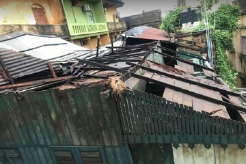 এই ছবিটি খাস কলকাতা এলাকার বৌবাজার অঞ্চলের৷ বুধবার ঝড়ে বৌবাজারের ব্যারাক বাড়ি সংলগ্ন একটি কাঠের বাড়ির টিনের চাল এভাবে উড়ে গিয়ে পড়ে পাশের বাড়িতে পড়ে ভাঙা চাল৷ ঝড় ও বৃষ্টির সঙ্গে প্রবল আওয়াজে কেঁপে ওঠেন এলাকাবাসী৷