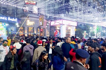 হাতের কাছেই পরপর রেস্তরাঁ, পানশালা৷ সেখানেও ভিড় চোখে পড়ার মতোই৷ যদি ২৪ তারিখে রাস্তা বন্ধ করা হয়নি৷ রাস্তার ধার দিয়েই আনাগোনা রয়েছে মানুষের৷ আলাদা করে ব্যারিকেড করে দেওয়া হয়েছে যাতায়াতের জন্য৷ (ছবি ও তথ্য - সাহ্নিক ঘোষ)