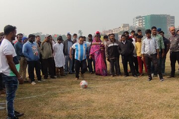 হলদিয়া হেলিপ্যাড ময়দানে এক ফুটবল প্রতিযোগিতার আয়োজন করা হয়। সেখানে আর্জেন্তিনার জার্সি গায়ে চুটিয়ে ফুটবল খেললেন তৃণমূল মুখপাত্র কুণাল ঘোষ।