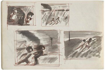 এই সেই দুর্গা-অপুর ট্রেন দেখার দৃশ্যের স্কেচ ৷