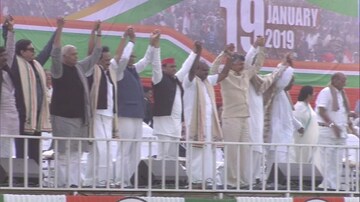 আজ কলকাতায় ঐতিহাসিক সমাবেশ। মোদিকে হারাতে কাণ্ডারী মমতা। লোকসভা ভোটের আগে ঐক্যবদ্ধ বিরোধীদের ছবি। (Photo: Twitter)