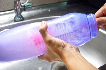 ধুয়ে শুকোতে হবে:এখন কল চালু করে তার তলায় বোতলটিকে ধরে ভাল ভাবে ঝাঁকাতে হবে। এর পর পরিষ্কার জল দিয়ে ধুয়ে জল ঝরিয়ে রোদে শুকিয়ে নিতে হবে। বোতলটি শুকিয়ে গেলে ছিপি আটকে ব্যবহার করা যাবে।
