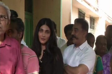 মেয়ে শ্রুতি হাসানকে নিয়ে ভোট দিলেন মক্কল নিধি মইয়ম প্রধান কমল হাসান ৷