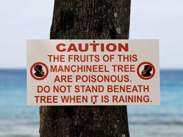 ক্যারিবিয়ান দ্বীপপুঞ্জের অনেক ম্যানচিনিল গাছের গায়ে বিধিবদ্ধ সতর্কীকরণ লেখা আছে। শুধু তাই নয়, গাছের গায়ে এটাও লেখা রয়েছে যে ‘বৃষ্টির সময়ে এই গাছের নীচে দাঁড়ানোও নিষিদ্ধ।