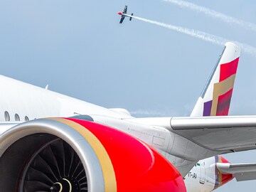 এম্পেনেজ শব্দটি ফরাসি ভাষার ক্রিয়াপদ ‘empenner’ থেকে এসেছে। যার অর্থ ‘তীরের পালক’। অধিকাংশ বিমানের পৃষ্ঠতলের সঙ্গে লম্বালম্বি বা আড়াআড়িভাবে থাকে এম্পেনেজ। এটাই প্রচণ্ড গতির মধ্যেও বিমানকে স্থিতিশীল রাখে। বজায় রাখে ভারসাম্য। Photo Courtesy: Air India