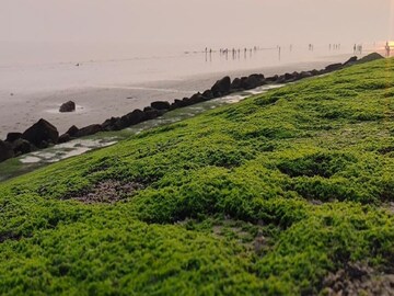 দেখে মনে হতেই পারে সমুদ্র সৈকতে যেন ঘাস দিয়ে সবুজ কার্পেট পাতা হয়েছে৷ উৎসাহী হয়ে কাছে গিয়ে ছবিও তুলতে যাচ্ছেন অনেক পর্যটক৷ আর তাতেই ঘটে যাচ্ছে ভয়ঙ্কর বিপদ৷