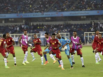 প্রথমার্ধেই গোল করে এগিয়ে গিয়েছিল ঘানা। ম্যাচের একমাত্র গোলদাতা সাদিক ইব্রাহিম। তবে ম্যাচে আরও বেশি গোল করার সুযোগ ছিল আফ্রিকান দলের ৷ গোলের পর সেলিব্রেশনে সিনিয়র দলের মতোই এদিন নজর কাড়ল ঘানার ছোটরাও ৷ Photo : PTI