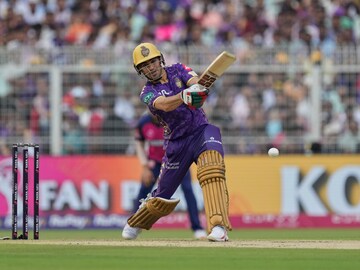 ম্যাচে টস জিতে প্রথনে ব্যাটিং করার সিদ্ধান্ত নেয় কেকেআর। শুরুটা ভাল হয়নি কলকাতার। নারিন দ্রুত ফিরলেও দ্বিতীয় উইকেটে ৫৬ রানের পার্টনারশিপ গড়ে দলকে ভিত গড়ে দেন অজিঙ্কে রাহানে ও রহমানউল্লাহ গুরবাজ। (Photo Courtesy- AP)