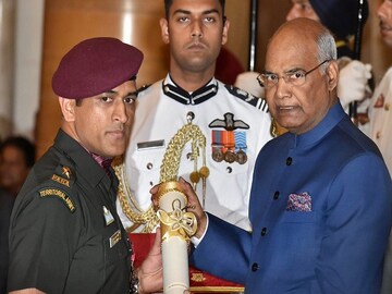 Former India captain Mahendra Singh Dhoni was honoured with the prestigious Padma Bhushan Award at a ceremony in Rashtrapati Bhavan in New Delhi by the President of India Ram Nath Kovind. Dhoni, who holds the honorary rank of Lieutenant Colonel of Indian Army accepted the award in his army uniform. In an Instagram post on Tuesday, the 36-year old went to say that accepting the honour in the uniform increased the excitement 10 times. Photo: President Of India