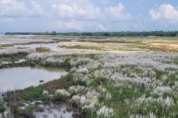 যেন সাদা চাদরে মোড়া নদীর দুই পাড়। কেউ যেন কাশের বিছানা করে রেখেছে। বর্ষার শেষে ভরা নদীর দুপাশ নীল সাদা কাশ বন মোহিত করবে আপনাকে। (Ranjan Chanda)
