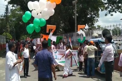 #আলিপুরদুয়ার : স্বাধীনতা দিবসের তোড়জোড় শুরু হয়ে গিয়েছে আলিপুরদুয়ার জেলা জুড়ে। আজাদি কা অমৃত মহোৎসব-এর জোর কর্মসূচি চলছে জেলা জুড়ে। ১২০ফিট ভারতের জাতীয় পতাকা নিয়ে র্যালি বিদ্যালয়ের ছাত্র ছাত্রীদের। \"আজাদিকা মহোৎসব\" উপলক্ষে ১২০ ফুট লম্বা জাতীয় পতাকা নিয়ে আলিপুরদুয়ার জংশন রেলওয়ে উচ্চতর মাধ্যমিক বিদ্যালয়ের ছাত্র ছাত্রীদেরকে নিয়ে র্যালি শুরু করল বিদ্যালয়ের শিক্ষক শিক্ষিকারা। শুক্রবার আলিপুরদুয়ার জংশন রেলওয়ে উচ্চতর মাধ্যমিক বিদ্যালয়ের পক্ষ থেকে আজাদীকা মহোৎসব উপলক্ষে এই র্যালির আয়োজন করা হয়।