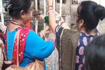 পঞ্চায়েত নির্বাচন শান্তিপূর্ণ ও অবাধ করতে ব্যর্থ প্রশাসন, এই অভিযোগ তুলে রামপুরহাট এসডিও অফিসের দরজায় চুড়ি পরিয়ে দিল বিজেপি
