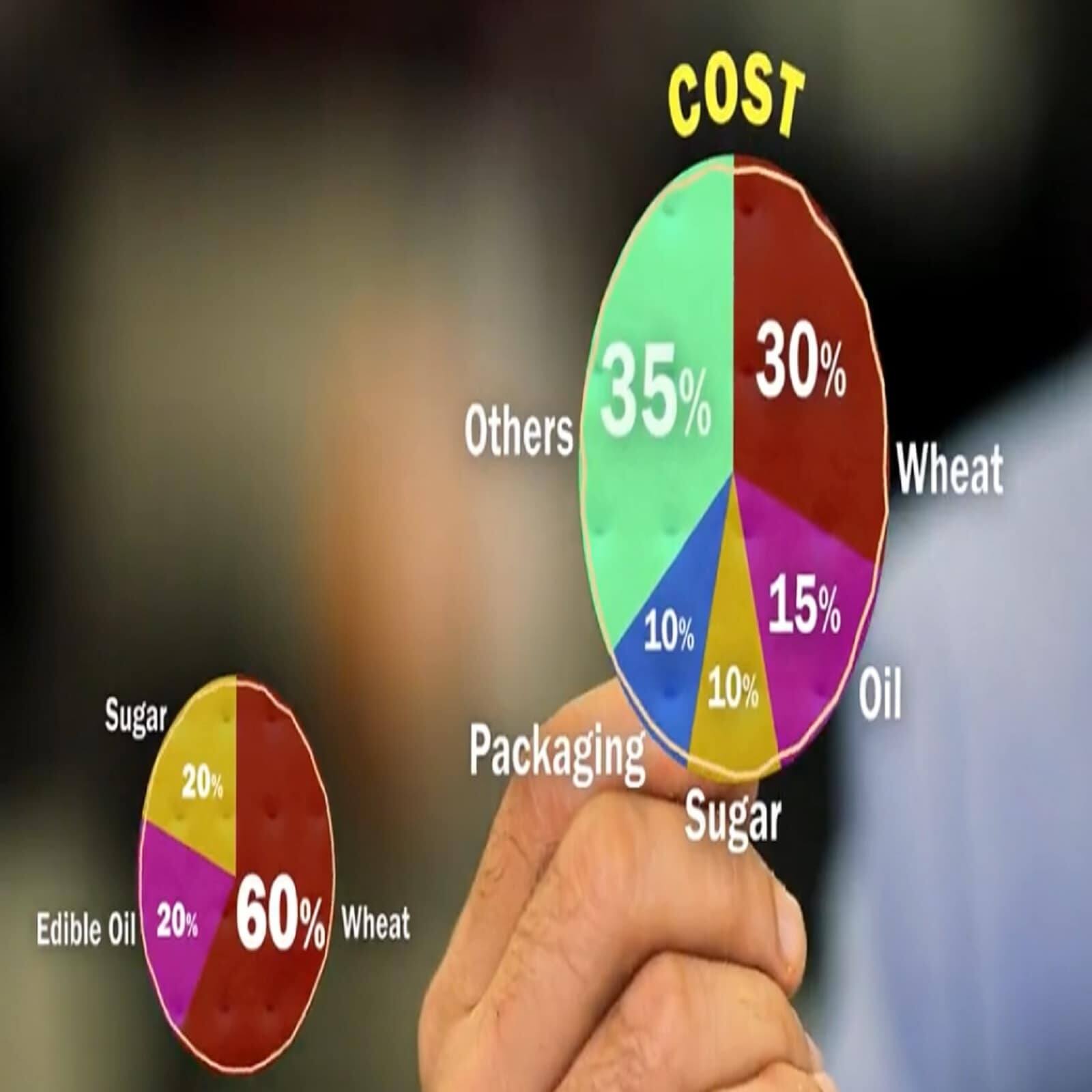 সাধারণত বিস্কুটে ৬০ শতাংশ গম, ২০ শতাংশ ভোজ্য তেল এবং ২০ শতাংশ চিনি থাকে ৷ খরচার হিসেবে গমে খরচ হয় ৩০ শতাংশ, ভোজ্য তেলের ১৫ শতাংশ, চিনিতে ১০ শতাংশ, প্যাকেজিং এবং অন্যান্য জিনিসে খরচা হয় ৩৫ শতাংশ ৷