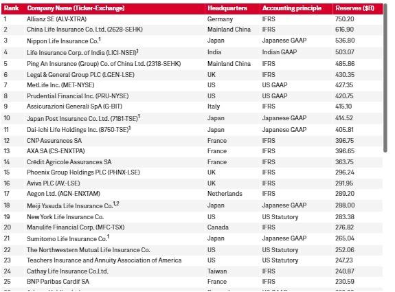রিপোর্ট অনুযায়ী, বর্তমানে এলআইসি-র রিজার্ভ ৫০৩.৭ বিলিয়ন ডলার। এলআইসি-র আগে রয়েছে তিনটি সংস্থা। বিশ্বের সেই শীর্ষ তিন বিমা কোম্পানি হল – জার্মানির আলিয়াঞ্জ এসই (৭৫০.২ বিলিয়ন ডলার), চায়না লাইফ ইনস্যুরেন্স কোম্পানি (৬১৬.৯ বিলিয়ন ডলার) এবং নিপ্পন লাইফ ইনস্যুরেন্স কোম্পানি (৫৩৬.৮ বিলিয়ন ডলার)।