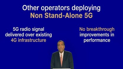 মুকেশ আম্বানি জানিয়েছেন যে Jio 5G হতে চলেছে বিশ্বের বৃহত্তম এবং সর্বাপেক্ষা আধুনিক 5G নেটওয়ার্ক। অন্যদের মতো এক্ষেত্রে পাশাপাশি 4G পরিষেবার উপরেও সংস্থা ভর দিয়ে থাকবে না। অনন্য আর্কিটেকচার, সেরা এবং বৃহত্তম স্পেকট্রাম, পাশাপাশি ক্যারিয়ার অ্যাগ্রেগেশনের দিক থেকে দেখলে কভারেজ, ক্যাপাসিটি, কোয়ালিটি এবং ক্রয়ক্ষমতা সব কিছু নিয়েই বিশ্বসেরা পরিষেবা দিতে বদ্ধপরিকর রিলায়েন্স ইন্ডাস্ট্রিজ লিমিটেড। ফলে, শুধু Jio 5G পরিষেবাই নয়, একাধারে মেটাভার্সের (Metaverse) অভিজ্ঞতাও গ্রাহকের হাতের মুঠোয় এনে দেবে সংস্থা, যে কারণে এই প্রকল্পে ২ লক্ষ কোটি টাকা বিনিয়োগ করা হয়েছে।