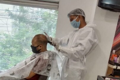 করোনা আতঙ্কের জের, কলকাতায় PPE পরে সেলুনে কাজ করছেন কর্মীরা, মাস্ক পরে আসা বাধ্যতামূলক