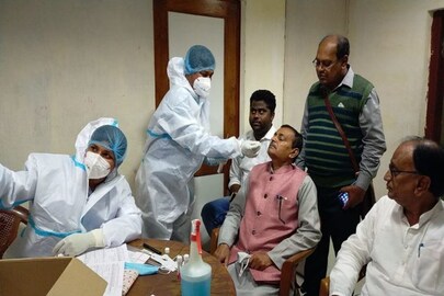 #বর্ধমান: করোনা নেগেটিভ শংসাপত্র না থাকলে মুখ্যমন্ত্রী মমতা বন্দ্যোপাধ্যায়ের কাছাকাছি আসতে পারবেন না কেউই। তাই মঙ্গলবার পূর্ব বর্ধমান জেলায় মুখ্যমন্ত্রীর সফরের আগে রবিবার তৃণমূলের নেতা মন্ত্রীদের অনেকেই করোনা পরীক্ষা করালেন। পূর্ব বর্ধমান জেলা পরিষদের অঙ্গীকার সভাকক্ষের পাশে বিশেষ ক্যাম্প করে নমুনা সংগ্রহ করা হল। মুখ্যমন্ত্রীর সুস্থতার জন্যই এই করোনা পরীক্ষার ব্যবস্থা বলে তৃণমূল কংগ্রেস সূত্রে জানা গিয়েছে।