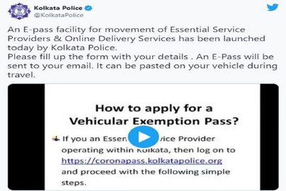 An E-pass facility for movement of Essential Service Providers & Online Delivery Services has been launched today by Kolkata Police. Please fill up the form with your details . An E-Pass will be sent to your email. It can be pasted on your vehicle during travel. pic.twitter.com/pf6MMyrvUx