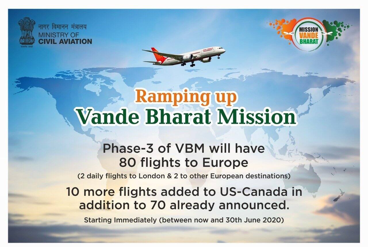 এ ছাড়াও ইউরোপে মোট ৮০টি ফ্লাইট যাবে আটকে থাকা ভারতীয়দের ফেরত আনতে। আগামী ১৪ জুন থেকে ৩০ জুন পর্যন্ত চলবে বন্দে ভারত মিশনের তৃতীয় পর্যায়। অসামরিক বিমান পরিবহণ দফতরের এক কর্তার কথায়, "সাধারণত বিমানের চাহিদা দেখেই তার সংখ্যা ঠিক করা হচ্ছে। প্রয়োজনে সে রকম চাহিদা থাকলে মিশনের মাঝপথেই আরও ফ্লাইটের সংখ্যা বাড়তে পারে।"