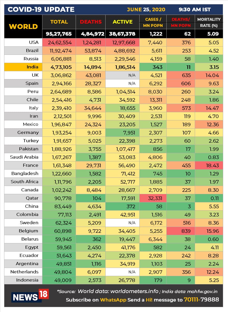 তবে আশা একটাই সুস্থও হচ্ছেন অনেকে । এখনও পর্যন্ত করোনায় সুস্থ হয়েছেন প্রায় আড়াই লক্ষ মানুষ । স্বাস্থ্যমন্ত্রকের দেওয়া পরিসংখ্যানে দেখা যাচ্ছে , ২৫ জুন সকাল ৮টা পর্যন্ত দেশে অ্যাক্টিভ করোনা আক্রান্তের সংখ্যা ১,৮৬,৫১৪ । সুস্থ হয়েছেন ২,৭১,৬৯৬ মানুষ । শতাংশের হিসেবে ৫৭.৪৩ ।