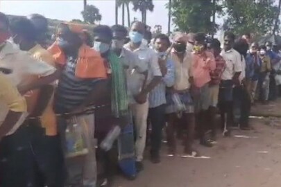 Andhra Pradesh | People in very large numbers gather at Krishnapatnam village in Nellore district where an Ayurvedic practitioner is distributing medicines for COVID19; social distancing norms flouted pic.twitter.com/plv60oxtXl