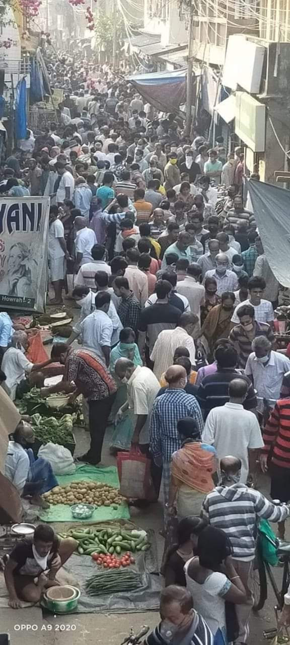 দোকানে গিয়ে শুধু সাধারণ মানুষকে বোঝানো নয়, তাদের জন্য দোকানের সামনে চুন দিয়ে গোল করে দেওয়া হল। আবেদন, সবাই বাজার বা প্রয়োজনীয় জিনিস কিনুন তবে থাকুন সেই গন্ডির মধ্যেই। করোনা ভাইরাস থেকে বাঁচতে দুরত্ব বজায় রাখার কথা যখন বলা হচ্ছে তখন তা অমান্য করতে দেখা গেছে কলকাতা শহরেই।