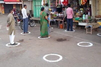 দোকানে গিয়ে শুধু সাধারণ মানুষকে বোঝানো নয়, তাদের জন্য দোকানের সামনে চুন দিয়ে গোল করে দেওয়া হল।