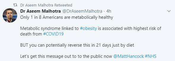 চিকিৎসকের মতে আমেরিকা ও লন্ডনে করোনায় মৃত্যুর হার বেড়ে যাওয়ার পিছনে রয়েছে অস্বাস্থ্যকর লাইফস্টাইল৷ এই দেশগুলিতে ৬০ শতাংশের বেশি মানুষ ওবেসিটি বা স্থুলতায় ভুগছেন৷ মার্কিন যুক্তরাষ্ট্রে প্রতি ৮জনে মাত্র ১ জন শারীরিকভাবে ফিট! যার জন্য করোনায় মৃত্যুর হার বেড়েই চলেছে এই সব দেশে, মত ডাঃ মলহোত্রা৷ তবে ডায়েট বদলে সুফল মিলবে হাতেনাতে, জানিয়েছেন তিনি৷