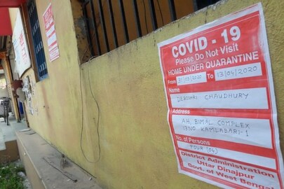 #রায়গঞ্জ: রায়গঞ্জের সাংসদ তথা কেন্দ্রীয় নারী ও শিশু কল্যান প্রতিমন্ত্রী দেবশ্রী চৌধুরীর আবাসনের রাস্তার ধারের দেওয়ালেই হোম কোয়ারান্টাইন নোটিশ সাটা হল।কে বা কারা এই নোটিশ সাটল এনিয়ে পঞ্চায়েত থেকে জেলা স্বাস্থ্যদপ্তর কেউ মুখ খুলতে রাজী হন নি। সোমবার রাতে মন্ত্রীর আবাসনের বাইরের দিকে একটি দেওয়ালে রাস্তার ধারা তিনটি হোম কোয়ারান্টাইন নোটিশ পোষ্টার দেখতে পাওয়া যায়।