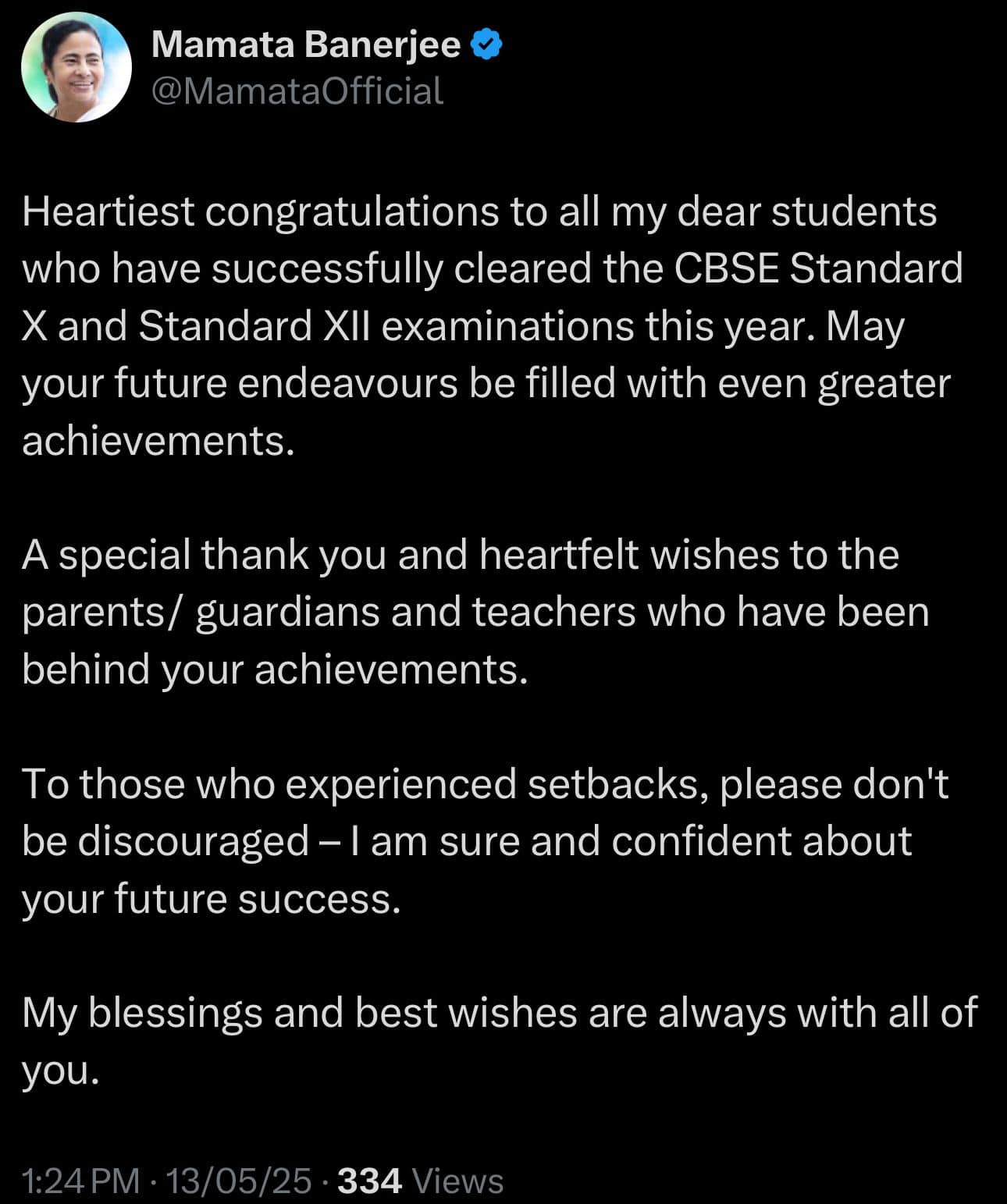 নয়াদিল্লিঃ প্রকাশিত হল সিবএসসির দ্বাদশ শ্রেণীর রেজাল্ট। চলতি বছর পাশের হার ৮৮.৩৯%। গত বছরের তুলনায় পাসের হার ০.৪১% বৃদ্ধি পেয়েছে। ৯১% এরও বেশি মেয়েরা পরীক্ষায় পাশ করেছে। ছেলেদের থেকে পাশের হারে এগিয়ে মেয়েরা। সিবএসসির দ্বাদশ শ্রেণীর রেজাল্ট প্রকাশিত হওয়ার পর সকল ছাত্রছাত্রীকে শুভেচ্ছা জানালেন রাজ্যের মুখ্যমন্ত্রী মমতা বন্দ্যোপাধ্যায়।