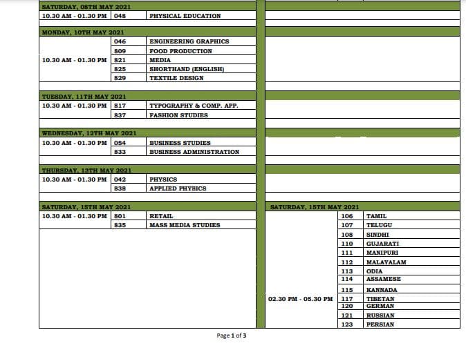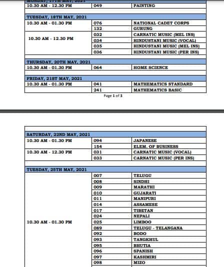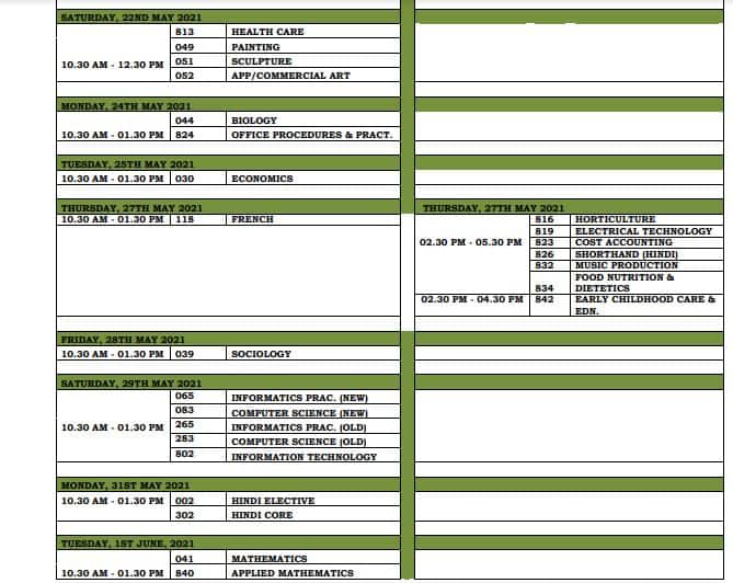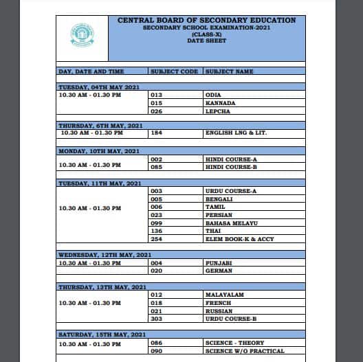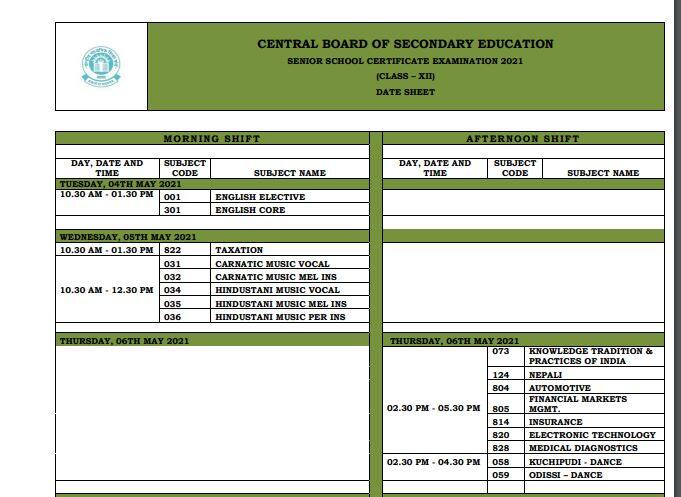 পরীক্ষার সূচী বা তালিকা বিস্তারিত দেখা যাবে https://www.cbse.gov.in/newsite/index.html -এ।