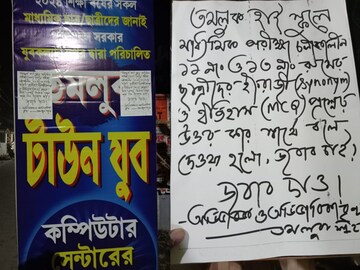 পোস্টারে অভিযোগ করা হয়েছে, দুটি রুমে আলাদা করে বসানো হয়েছে দুই ছাত্রীকে। সেখানে শিক্ষকরা দুই ছাত্রীকে প্রশ্নের উত্তর বলে দিয়েছেন। একজন ছাত্রী আবার ওই স্কুলেরই শিক্ষকের মেয়ে। এমন অভিযোগ তুলে স্কুল চত্বরে পড়েছে পোস্টার। পোস্টারের নিচে লেখা রয়েছে অভিভাবক অভিভাবিকা বিষয়টি নিয়ে তমলুক শহরে শুরু হয়েছে চর্চা। ঘটনা নিয়ে এখনও পর্যন্ত প্রতিক্রিয়া পাওয়া যায়নি কারুর।
