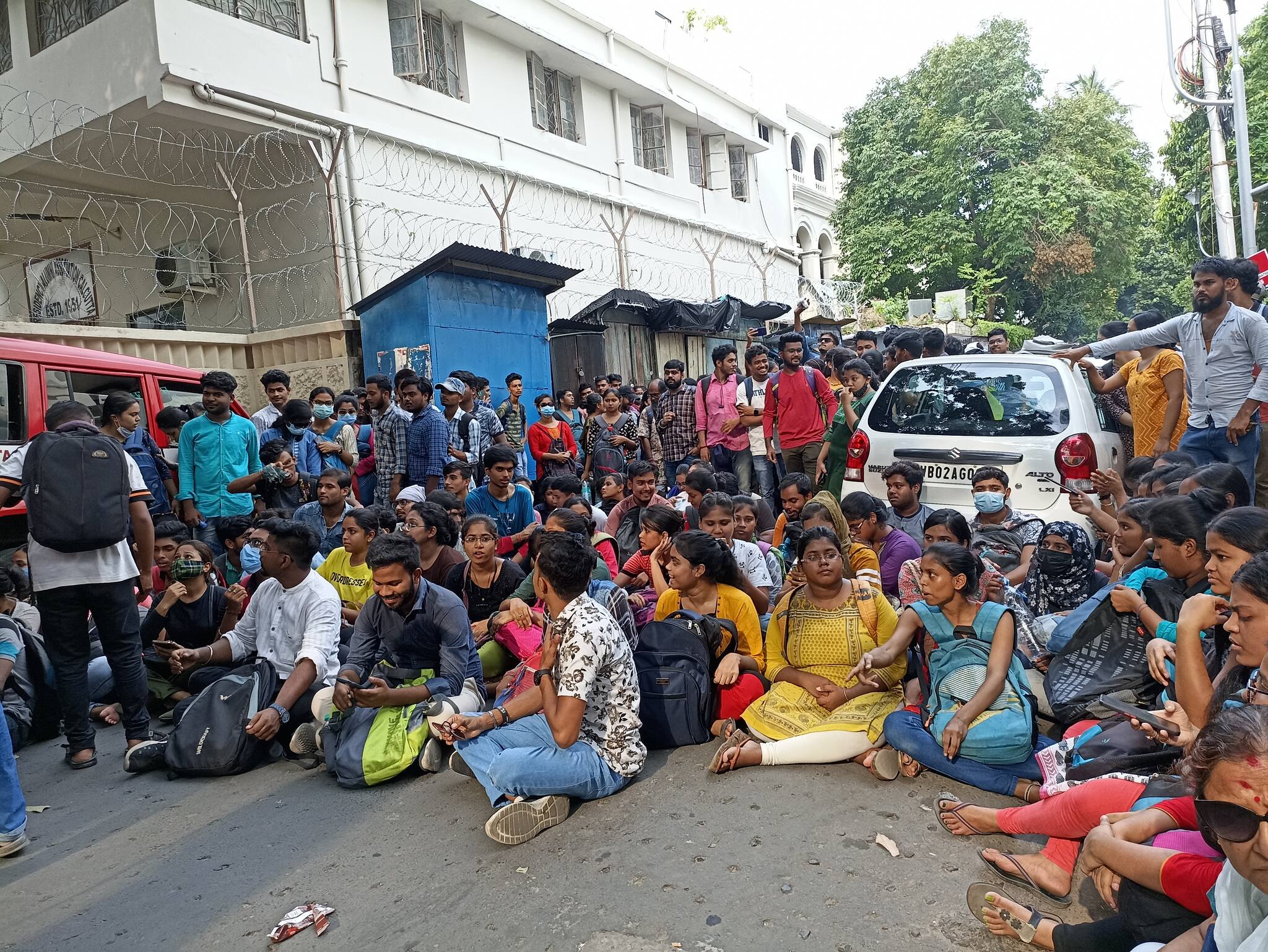 একদিকে কলেজ স্ট্রিট ক্যাম্পাসের ভেতরে যখন বৈঠকে রয়েছেন কলেজ এবং বিশ্ববিদ্যালয় কতৃপক্ষ, ঠিক তখনই বিশ্ববিদ্যালয়ের দুটি গেটে বিভিন্ন কলেজের ছাত্রছাত্রীরা একজোট হয়ে বিক্ষোভ দেখতে থাকেন। অনলাইনে পরীক্ষা নিতে হবে, এই দাবি সামনে রেখে তারা বিক্ষোভ দেখাতে থাকেন। তাদের দাবি যেহেতু বেশিরভাগ কলেজেরই প্রায় ৫০-৬০ শতাংশ সিলেবাস এখনও বাকি, তাই তারা কোনোভাবেই অফলাইনে পরীক্ষা দিতে পারবেন না। পঠনপাঠন যখন অনলাইনে করা হয়েছে তখন পরীক্ষার বেলা অফলাইন মাধ্যম কেন? প্রশ্ন তুলছেন তারা।