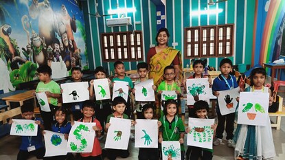 দু-হাতে রঙ মেখে ছোট ছোট খুদেরা নিজেদের আর্ট পেপারে ছাপ তুলছে পরম আনন্দে। কেউ তৈরি করছে গাছ, টব, ফুল, প্রজাপতি, ময়ূর, জিরাফ আরও নানান কিছু। কেউ কেউ হাতে ছাপে তৈরি করেছে সবুজ পৃথিবী। দূষণের থেকে বাঁচাতে হবে পৃথিবীকে। বাঁচাতে হবে জীবের প্রাণ। আগলে রাখতে হবে বাস্তুতন্ত্রকে। বিষয়টা কঠিন। এই কঠিন বিষয়কেই সহজ করে আরও সহজদের মাঝে ছড়িয়ে দিয়ে বেশ কঠিন কাজ উতরে দিয়েছেন স্কুলের শিক্ষিকারা।