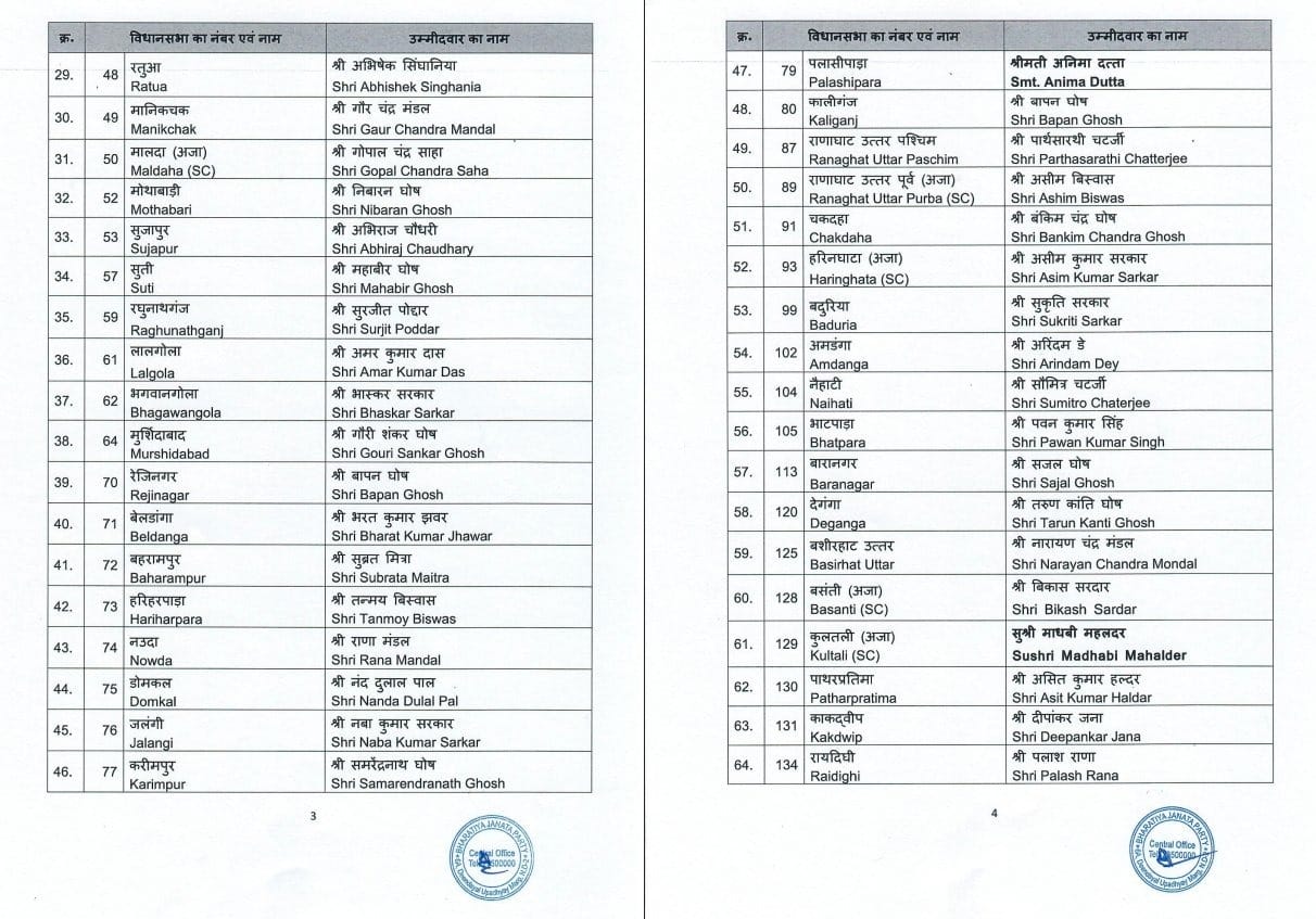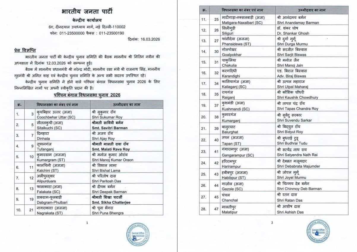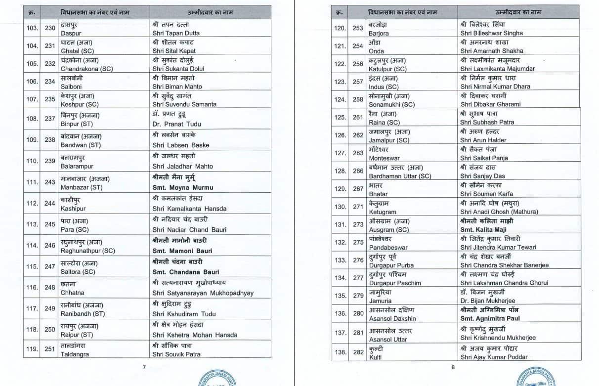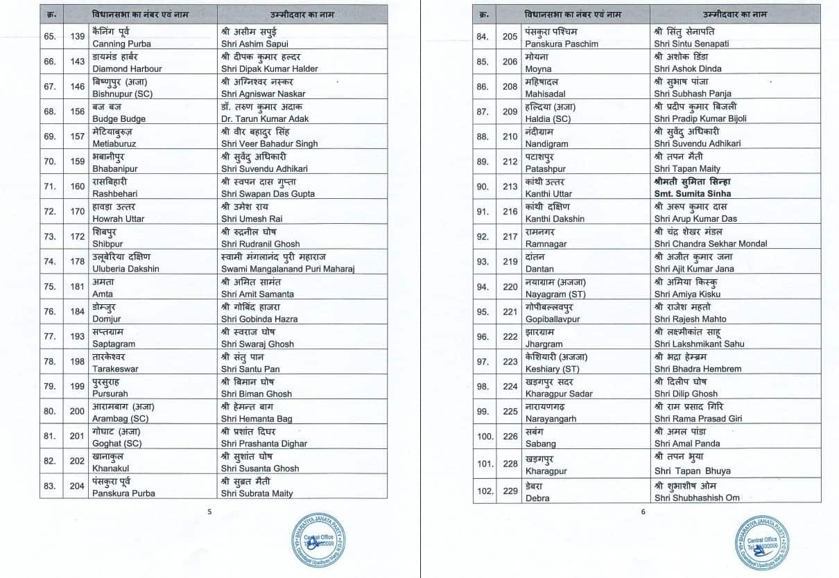 এক নজরে দেখে নেওয়া যাক, কাকে কোন কেন্দ্র থেকে প্রার্থী করল বিজেপি-